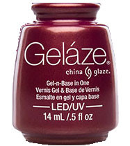 Gelaze an innovative 100% Gel Polish that includes the Base Coat in the Gel Polish. Less steps for longer wear. The creators of China Glaze have created a unique 2-step gel system available. Simply apply Gel Polish and Top Coat, cure and you’re set! Express yourself with your favorite hues to match your every style and mood. You’ll feel confident knowing your Gelaze high-shine gel manicure will remain chip-free for up to two weeks. Create fabulous ways to use China Glaze lacquer to create designs over colour-matched Gelaze Gel Polish.